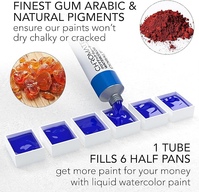 - CONTROL YOUR PAINT USAGE WITH NO WASTE: Unlike watercolor pans, these watercolor paint tubes allow for precise control over how much paint is used. The smooth consistency prevents clumping and makes it easy to mix custom shades, ensuring the perfect amount of color for every project.