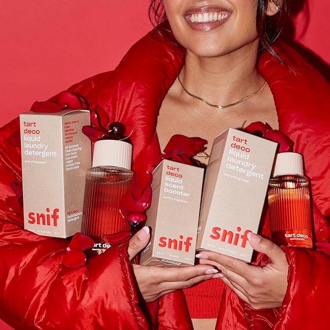 Snif Tart Deco Laundry Detergent, Juicy, Sophisticated Cherry Scent, 64 Loads, Non-Irritating to Skin, Clean, Non-Toxic, Vegan, Cruelty Free, 32oz