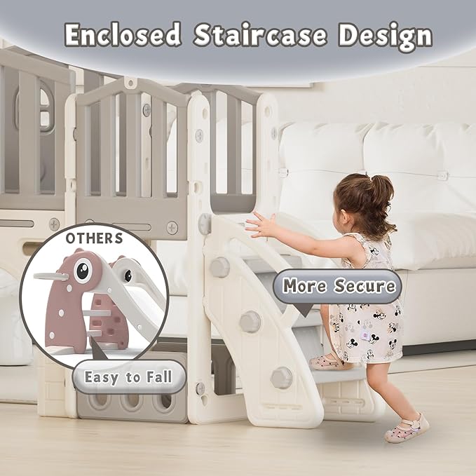 - Safety First Design: Our kids slide is thoughtfully designed with safety as the top priority. It features enclosed stairs, gentle slopes, sturdy construction, and smooth edges, ensuring peace of mind for both children and parents during playtime.