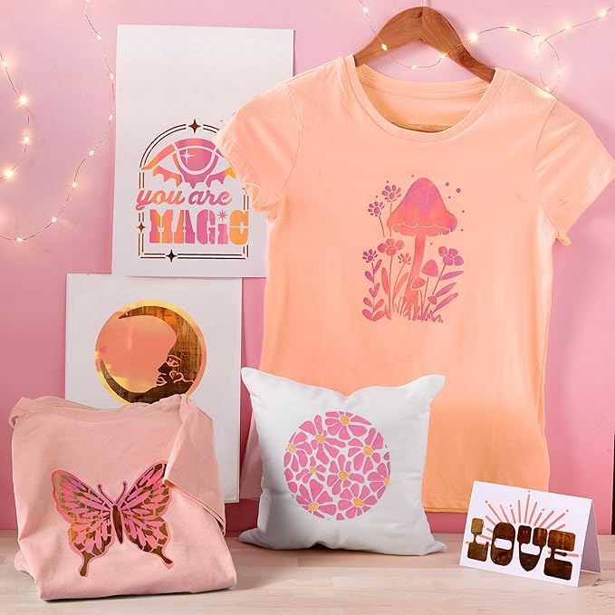 - Professional-Quality Results – Sticky stencils ensure clean, sharp edges every time, making it easy for beginners and seasoned artists to create polished, boutique-worthy designs on any fabric.