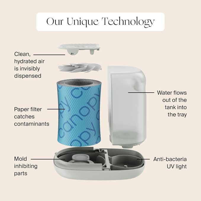 - THE CANOPY BRAND PROMISE - 60 DAY GUARANTEE - We are driven by the quality of our products and our commitment to creating reimagined household devices that effortlessly optimize the home for beauty and wellness. Every Humidifier comes with our state of the art technology and design - an experience only found with Canopy. Not only will our humidifier help you improve your health, skin, and sleep quality; it will help you unwind, relax and destress after a long day.