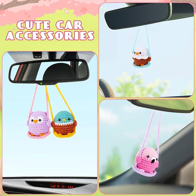 Crochet Kit for Beginners -4 PCS Bird Crochet Kits with Step-by-Step Video Tutorials, Beginner Crochet Kit for Adults and Kids, Crochet Birds On The Swings(Mallard Bald Eagle Flamingo Owl)