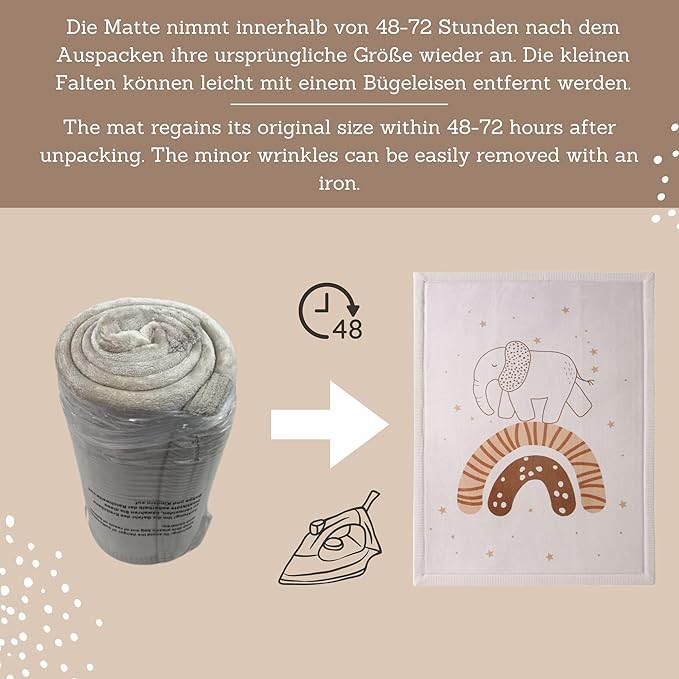 - Easy-care & hygenic kids room rug can be cleaned within seconds with a vacuum cleaner or dump cloths and soap. The baby playmat is hand-washable at 86°F (30°C) and is suitable for the floor heating. DESIGNED IN GERMANY – we offer a 30-day free return policy and a 2-year warranty.