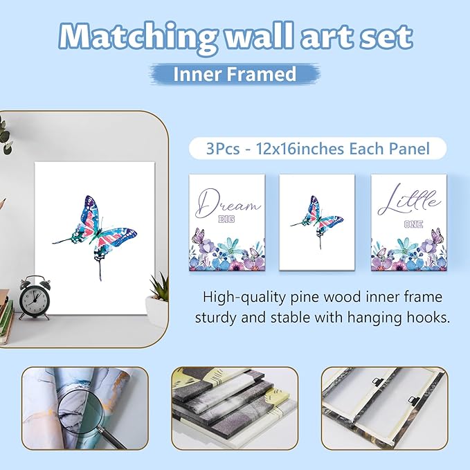- Matching Set: This baby crib set includes a crib blanket, fitted crib sheet, changing pad cover, baby rug and three wall arts, all designed to add style to your nursery. Each piece is crafted with attention to detail, ensuring durability and long-lasting use.