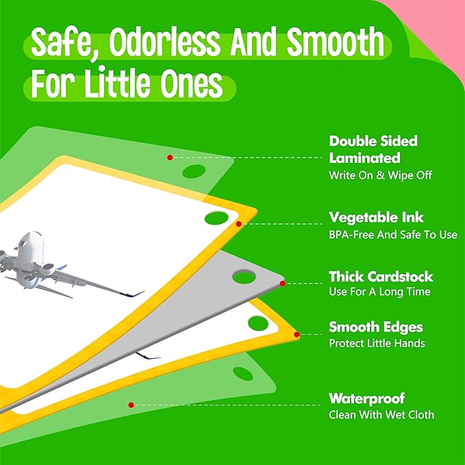 - Portable and Easy-to-Organize: Pre-punched holes and two sturdy rings keep the cards neatly organized for effortless portability. Whether on a road trip, in the classroom, or at home, this compact set ensures that learning can happen anytime, anywhere.