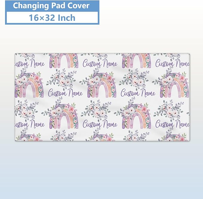 Personalized Baby Bedding Set, 5 Pcs Custom Baby Crib Set with Name, Soft Flannel Rainbow Crib Bedding Set for Girls, Double Layer Nursery Bedding Set, Infant Toddler Bedding Set Parents Gift