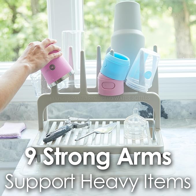- ✅ LARGEST DRYING CAPACITY! It has the largest flat drying surface of any compact drying rack! The nine strong drying arms are spaced far apart so that they can not only hold narrow baby bottles but also hold heavy and wide 40oz tumblers.