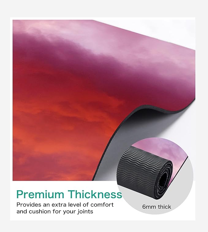 - Standard Size: 72"(183cm) x 24" (61cm); offers adequate space to fit any type of exercise like yoga, pilates, bikram, and fitness exercise. the 6mm extra thick, high density provides excellent cushioning and soft. All our mats come with a free carry bag for easy transport from home to yoga class