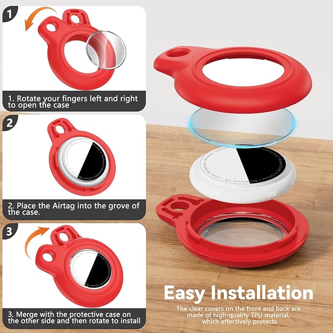 - Easy Installation: No complicated operation is required, and you can fix AirTags in the Holder in a few easy steps;[Tips]: The specific installation steps can be seen in the picture; The protective cover of the Apple Airtags keychain will not affect the touch screen and shield the signal; Whether it is finding lost items or remote tracking, it can be easily achieved