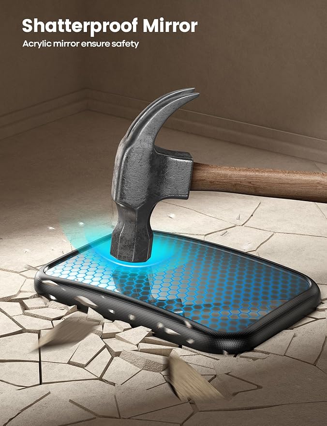 - Special Feature : Shatterproof, Anti-Shake, 360° Rotation & Wide Clear View, 3S Quick Install