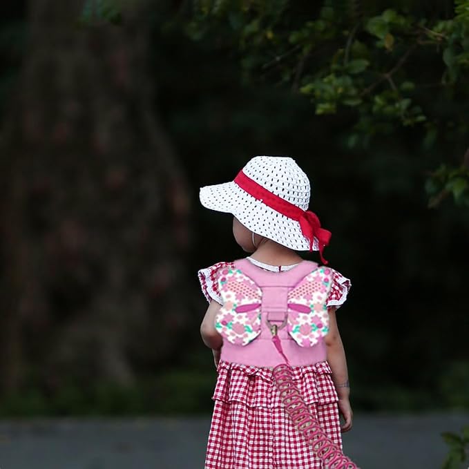 Anti Lost Toddler Harness - Butterfly Baby Leash and Wrist Link with Lock, Child Walking Harness Assistant for Girls, Cute Traction Safety Leash for Kids, Holiday Travel Christmas Gift, Pink