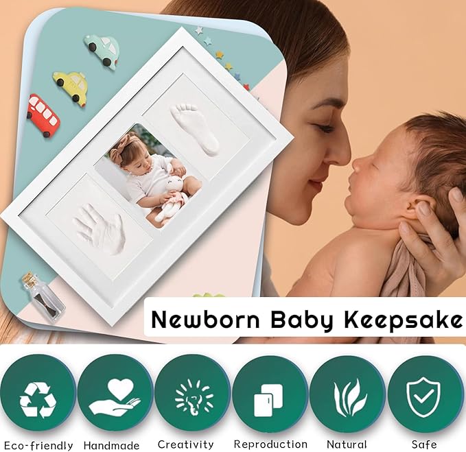 Baby Clay Hand and Footprint Kit, Newborn Keepsake Frame, Personalized Baby Gifts for New Mom Nursery Decor, Baby First Christmas Gifts for Girls Boys Baby Shower Gifts