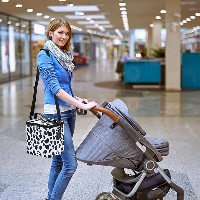 Breastmilk Cooler Bag with Ice Pack Fits 6 Baby Bottles Up to 9 Ounce, Baby Bottle Bag with Shoulder Strap for Nursing Mom Daycare, Cow