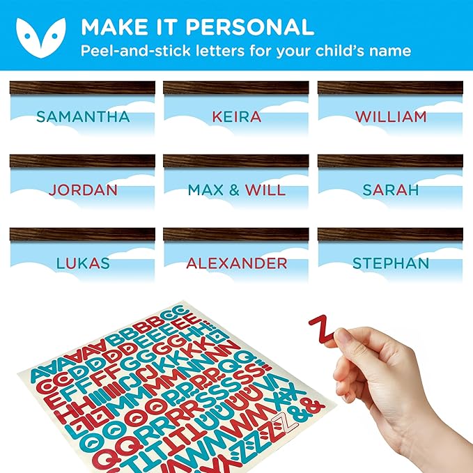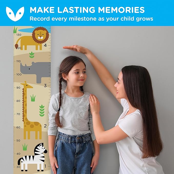 - MAKE IT PERSONAL - Your child will love seeing their name on their favorite safari animals wall growth chart! Use our peel-and-stick decal letters to personalize your height tracker for kids.