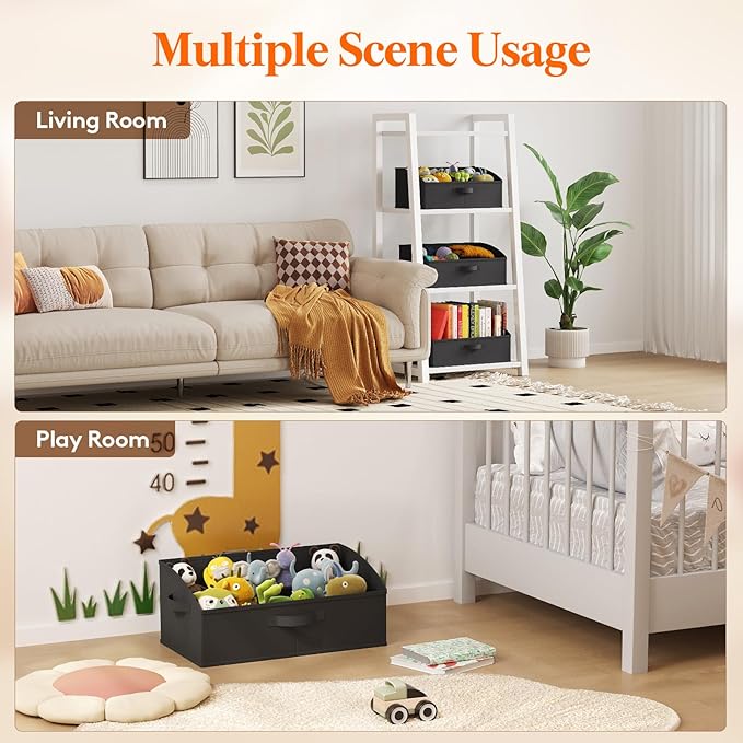 - Premium Material: Crafted from high-quality non-woven fabric, these closet organizer bins are supported by thick cardboard on the sides and bottom, ensuring a sturdy structure that resists deformation. This robust construction guarantees long-term use and excellent load-bearing capacity. Additionally, the bins are foldable, allowing for space-saving storage when not in use.