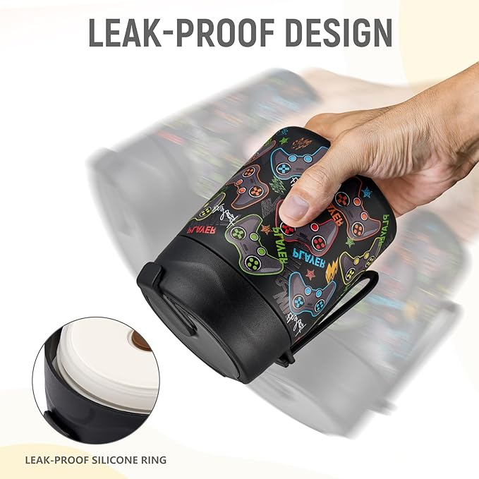 17oz Soup Thermo for Hot Food Kids Insulated Vacuum Food Jar with Stainless Steel Spoon Wide Mouth Thermo Leakproof Lunch Food Container Kids Hot Lunch Box (Black-Game)