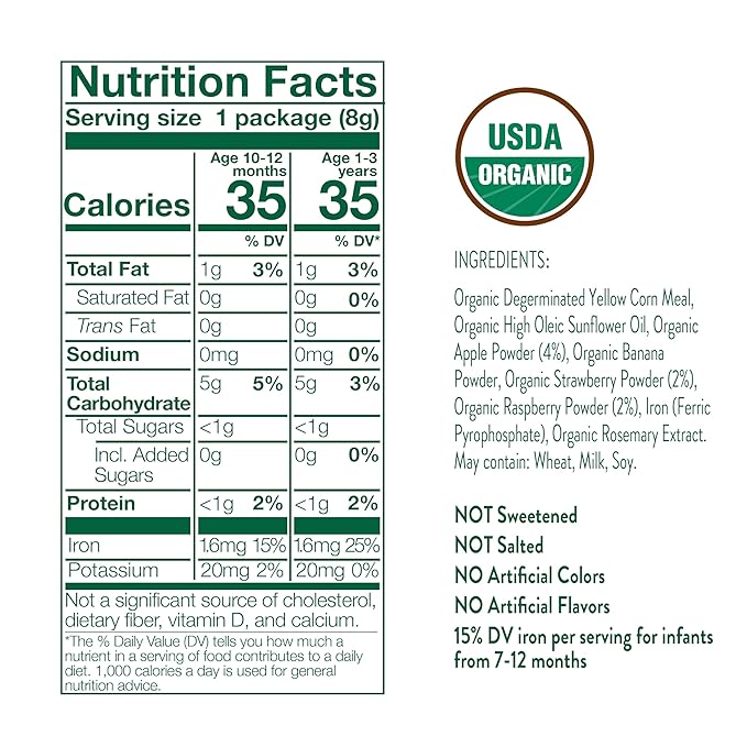 - Always natural and wholesome โ We only use natural food ingredients that you can recognize such as fruit and vegetable powders, lentils and grains. All our products are non-GMO, free from artificial colors, flavors or additives