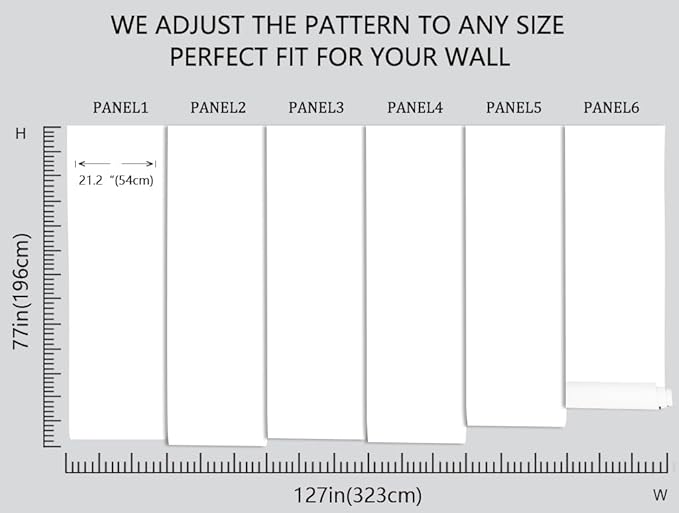 - Before purchasing, you need to measure the size you need, our mural is 77 inches high and 127 inches wide, in order to facilitate long-distance transportation, we divide the width of the mural into six pieces of 21.2 inches each, with a numerical serial number underneath each piece for easy installation!
