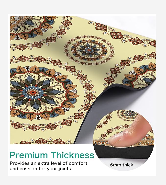 - Standard Size: 72"(183cm) x 24" (61cm); offers adequate space to fit any type of exercise like yoga, pilates, bikram, and fitness exercise. the 6mm extra thick, high density provides excellent cushioning and soft. All our mats come with a free carry bag for easy transport from home to yoga class