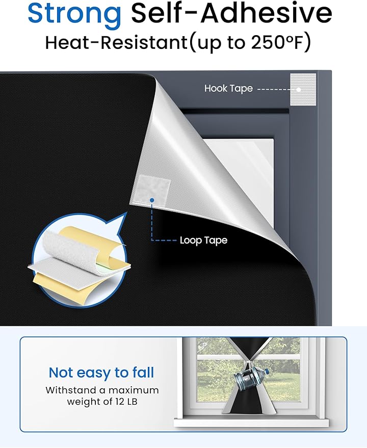- â¨ăUpgrade Heat-Resistance Magic TapesăSumobaby 34"x72" blackout curtain for bedroom features premium pre-attached tapes for easy,drill-free installation.Two extra tape strips included,each splitable into 5 squares.Made of acrylic, these tapes leave no residue,providing strong adhesion and heat resistanceďź200°F to 250°F).Bid farewell to concerns about your black out curtains slipping in hot weather.