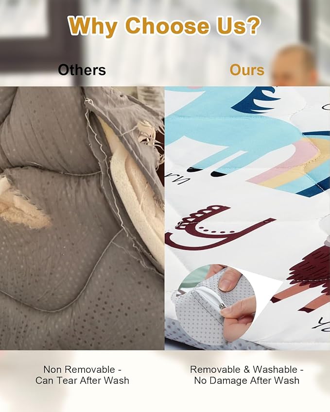 - Easy to Clean: With a removable, machine-washable cover, this play mat is designed for easy maintenance. Simply remove the cover and toss it in the washer, making cleanup quick and hassle-free.