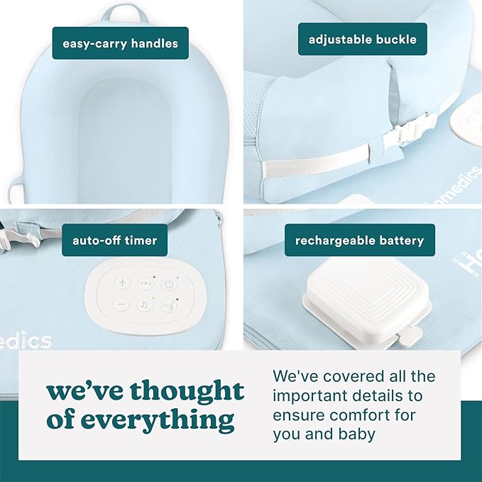 MyBaby 3-in-1 Calming Baby Cushion, Soothing Comfort for Newborns & Infants, Snuggling Sensation, Sound and Vibration, Designed for Safety, Rechargeable & Machine-Washable, by Homedics, Blue