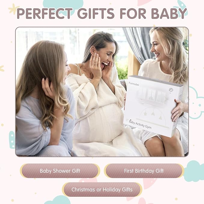 - [Ideal Baby Item]: Designed to encourage curiosity, sensory development, and hand-eye coordination, this baby activity gym is perfect for babies aged 0-18 months. It makes a thoughtful gift for baby showers, first birthdays, and bonding moments.