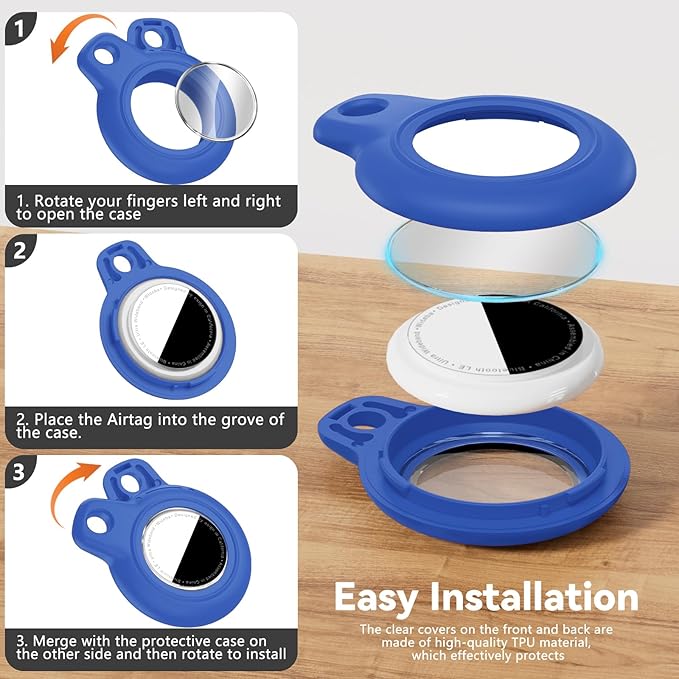 - Easy Installation: No complicated operation is required, and you can fix AirTags in the Holder in a few easy steps;[Tips]: The specific installation steps can be seen in the picture; The protective cover of the Apple Airtags keychain will not affect the touch screen and shield the signal; Whether it is finding lost items or remote tracking, it can be easily achieved