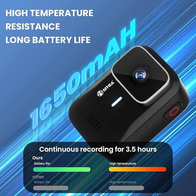 - 🔋3.5-Hour Marathon Battery & Charge-While-Record Never cut adventures short! The long-lasting 3.5-hour battery supports continuous recording while charging—ideal for cross-country road trips, 24/7 dash cam use, or multi-day expeditions.