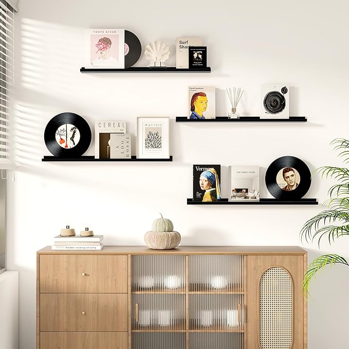 - 3.5" PICTURE LEDGE DESIGN: Ideal for displaying photos, artwork, or collectibles, these feature a thoughtful extremely narrow 3.5-inch width ledge design to prevent items from sliding forward, its mounting holes are spaced 16 inches apart for secure mounting to wall studs uncluttered aesthetic