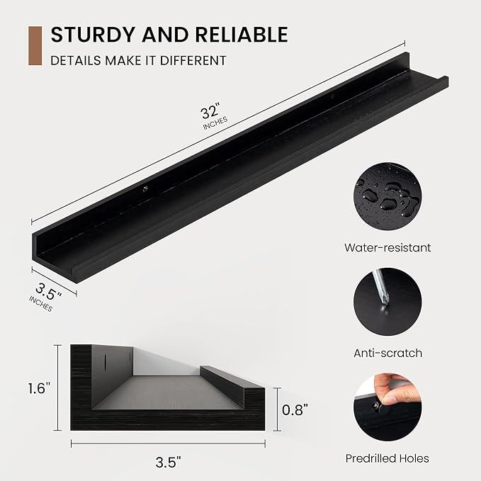- Chic Minimalist Design: Solid pine wood picture ledge shelves available in multiple colors and sizes, these picture shelves complement any decor, from modern to farmhouse. Use them alone or in a gallery-style arrangement to create a stylish focal point