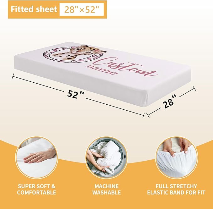 Personalized Baby Bedding Set, 5 Pcs Custom Baby Crib Sets with Name, Toddler Bedding Set for Baby Girls, Pink Leopard Double Layer Nursery Bedding Set, Customized Gifts for Infants Kids