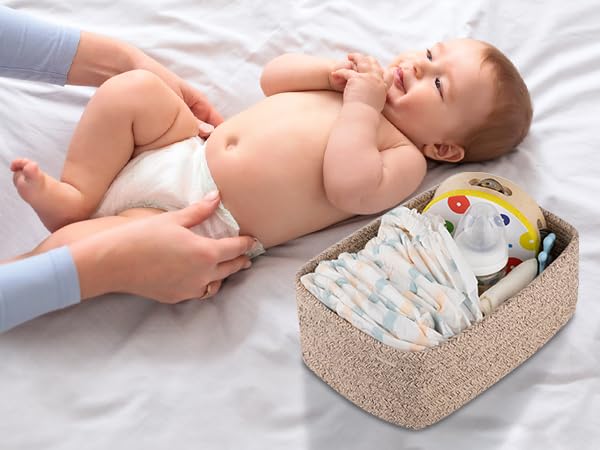 - [Premium Cotton Material]:Our cute baby storage baskets are made of high quality cotton hand-woven by workers, soft and odorless, no sharp edges and corners, very friendly to babies and pets, a good choice for baby-sitting baskets and dog or cat toy baskets
