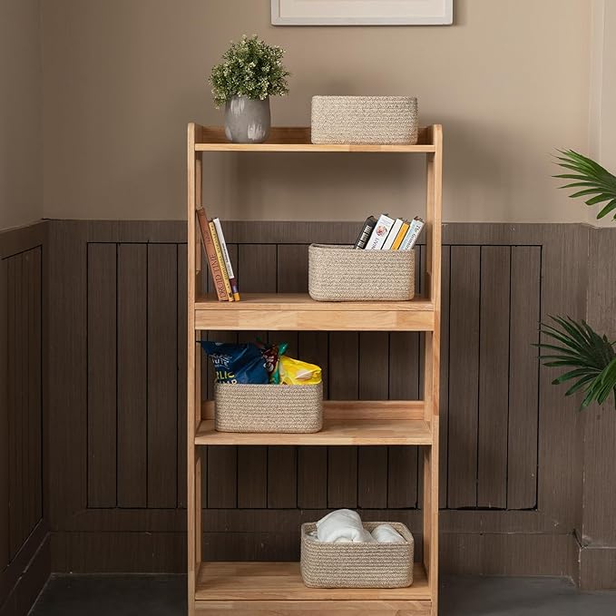- [Cute & Small Decorative Storage Baskets]: These 4 Pack woven baskets measuring 11.81” x 7.87” x 4.72”, the fantastic woven rope baskets with mini size, which can work as shelf baskets for organizing, cute and practical for home decor, making your home more cozy and attractive