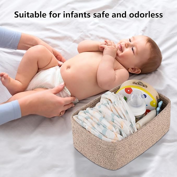 - [Premium Cotton Material]:Our cute baby storage baskets are made of high quality cotton hand-woven by workers, soft and odorless, no sharp edges and corners, very friendly to babies and pets, a good choice for baby-sitting baskets and dog or cat toy baskets