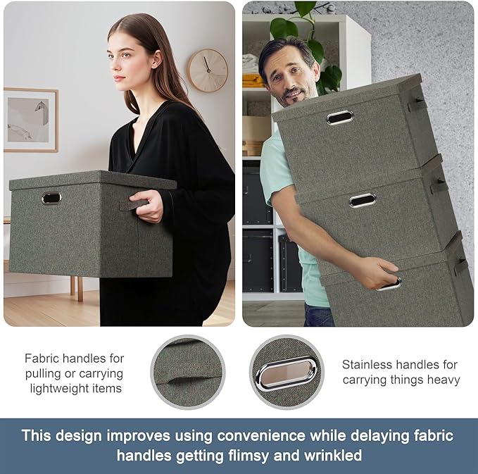- ✅[Constant Use] Covered by thick textured cloth, our large lidded storage bins prevent daily wears and tears. They can keep dust and bugs out also, avoiding dirt and musty smell. You can use these decorative storage boxes with lids everyday or for long term storage.