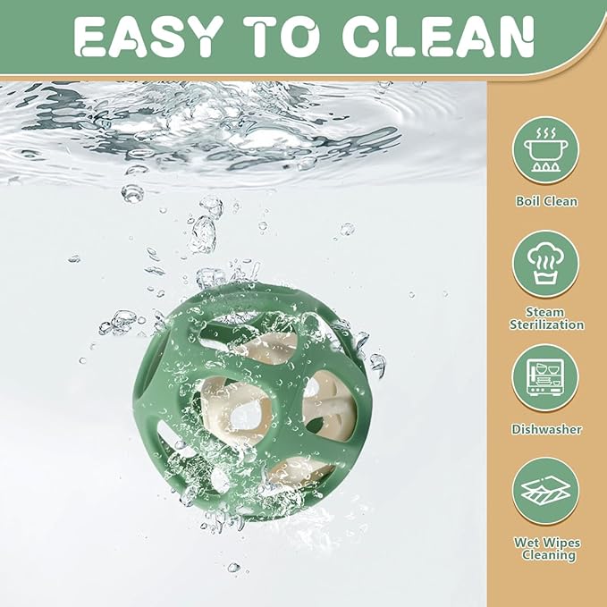 - 【Easy to Grasp & Hold】Designed with tiny hands in mind, this baby ball toy features a size and finger holes that's easy for infants to grasp, promoting motor skill development and sensory exploration. All teether balls do not have small part plugs to avoid the danger of choking hazard. Weight: 76g/2.68oz