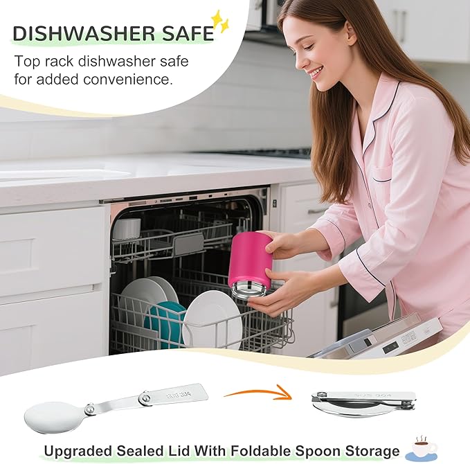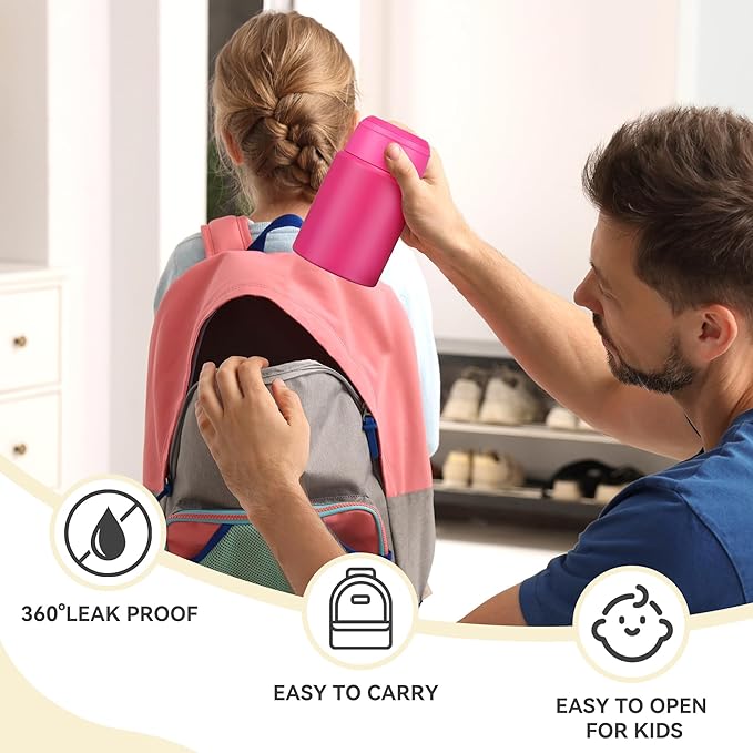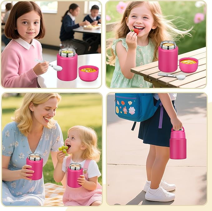 - FOOD-GRADE SAFETY & CPC CERTIFIED - The inside of kids thermo food container is made of high quality 316 stainless steel. Fully compliant with CPC standards to ensure child safe material. Double-layer vacuum insulation design, open lid venting for safe steam release. Durable, care for children's health.