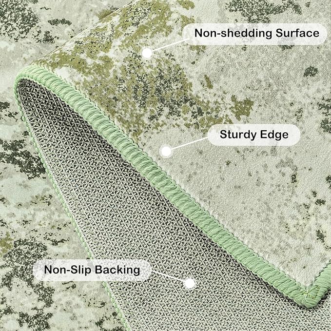 Kelarea 4x6 Rug for Living Room, Green Washable Non-Slip Rugs, Low Pile Soft Modern Abstract Carpet for Bedroom, Kitchen, Dining Room, Classroom, Dorm, Nursery, Home Office