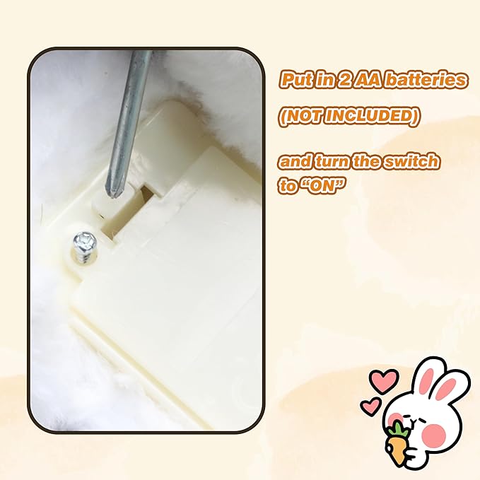 - CONSIDERATIONS: Simply insert 2 AA batteries(NOT INCLUDED) to the battery holder on its tummy. Turn the red switch to ON, and this delicate jumping rabbit will start walking with chirp and hopping forward