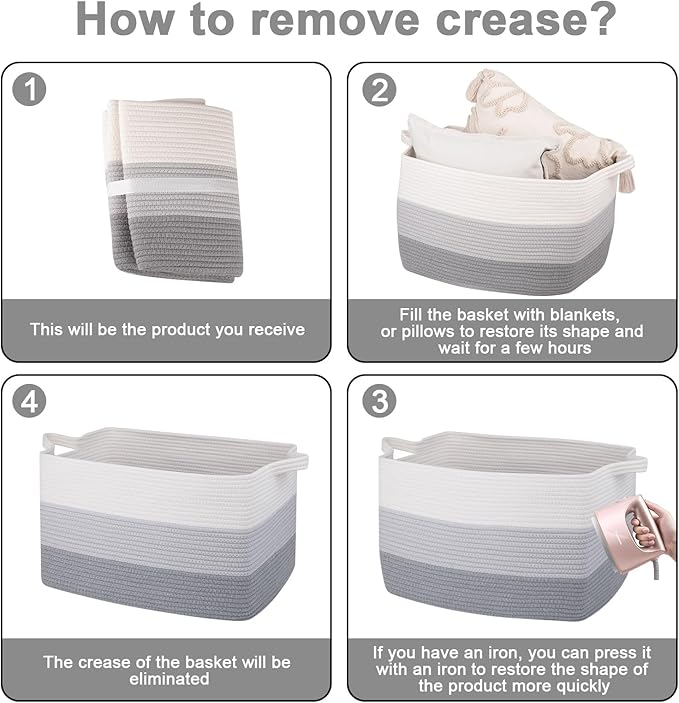 - NOTE: The toy basket is folded, but it will turn back to its elegant shape quickly if you fill it with some pillows or blankets, and iron is great idea to remove the creases