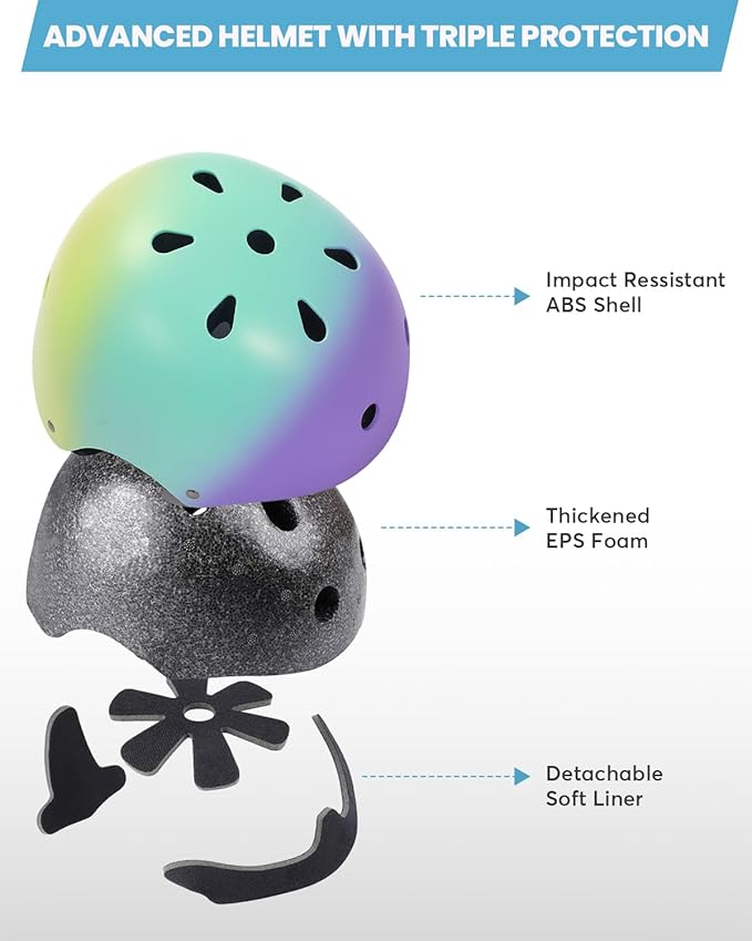 - Ventilated & Sweat-Absorbing Comfort - Equipped with 11 air vents and breathable, removable interior padding that helps absorb sweat and improve comfort. Keeps kids cool and dry during biking, skateboarding, scootering, rollerblading, and more.