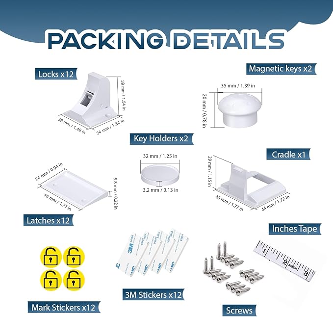 Blessimo® 12 Pack Magnetic Cabinet Locks Baby Proofing with 12 locks and 2 Keys - Child Locks For Kitchen, Cabinets and Drawers - 3M Adhesive Easy Installation