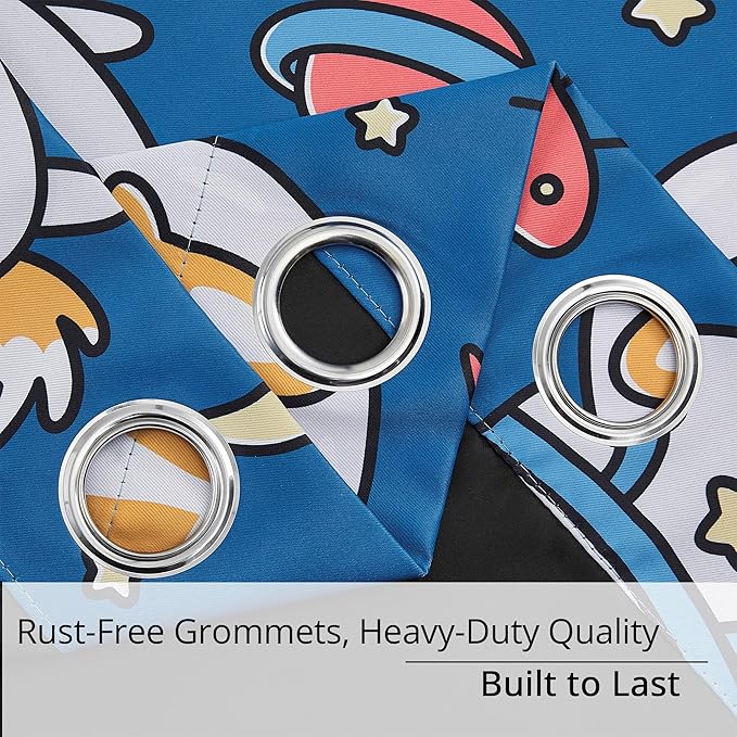 Kids Blackout Curtains - Space Dog Design, 100% Blackout, 2 Panels, Each W52×63, Thermal Insulated, Noise Reducing & Energy Efficient for Kids Bedroom, Turn your child’s room into a fun adventure