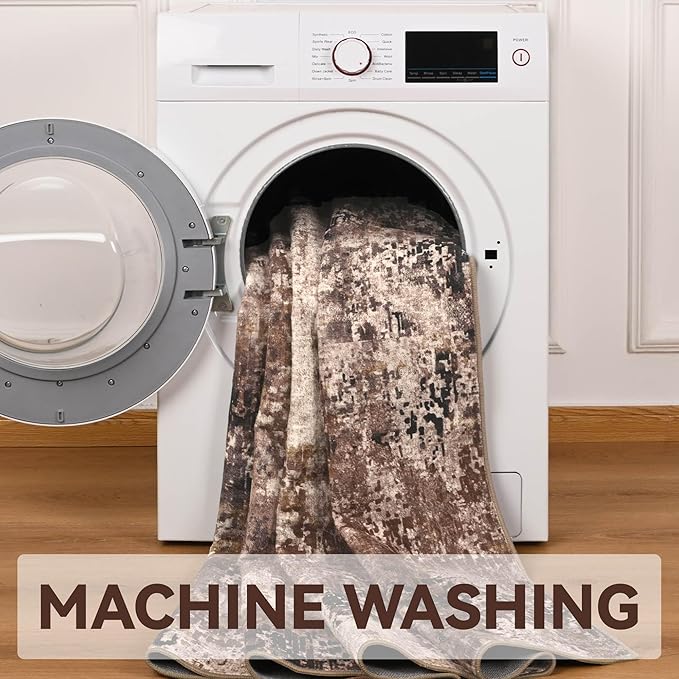 Living Room Rugs 5x7 Brown Washable Area Rug, Abstract Modern Bedroom Rugs Coffee Non Slip Stain Resistant Neutral Large Carpet for Nursery, Dining, Kids Playroom, Dining Room, Office