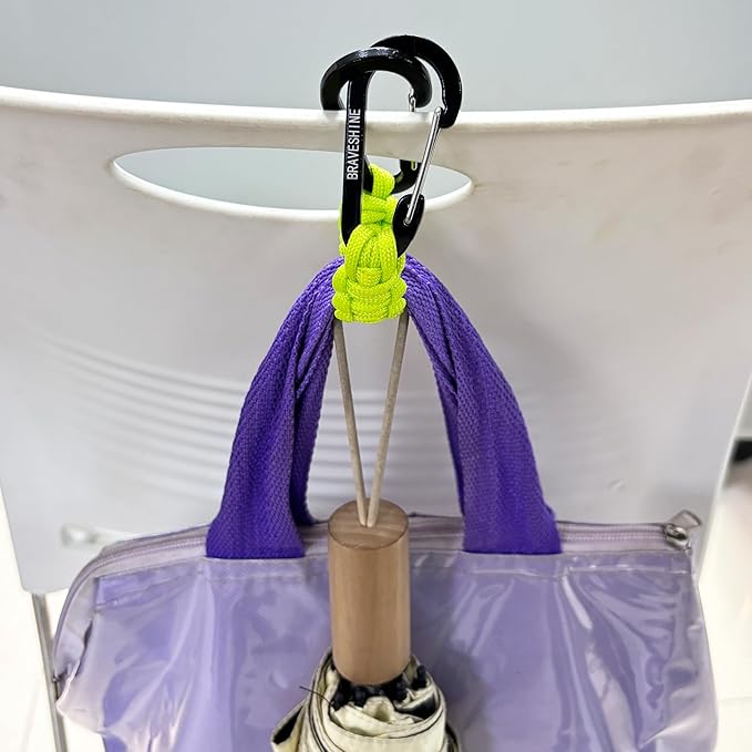 BRAVESHINE Paracord Keychain Carabiner Clip, D Ring Lanyard Hanger Stroller Hook for Water Bottle, Key, Backpacks, Men, Women