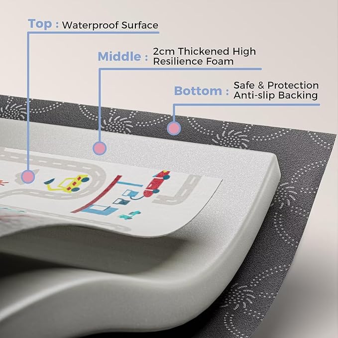 - 【Easy to Clean】Without worries stains and spills! the surface of baby playmat is wateproof and the liquid will not soak the mat, easy to clean with tissue or wet towel. Design with special quilting process that support washed in a washing machine without deformation.