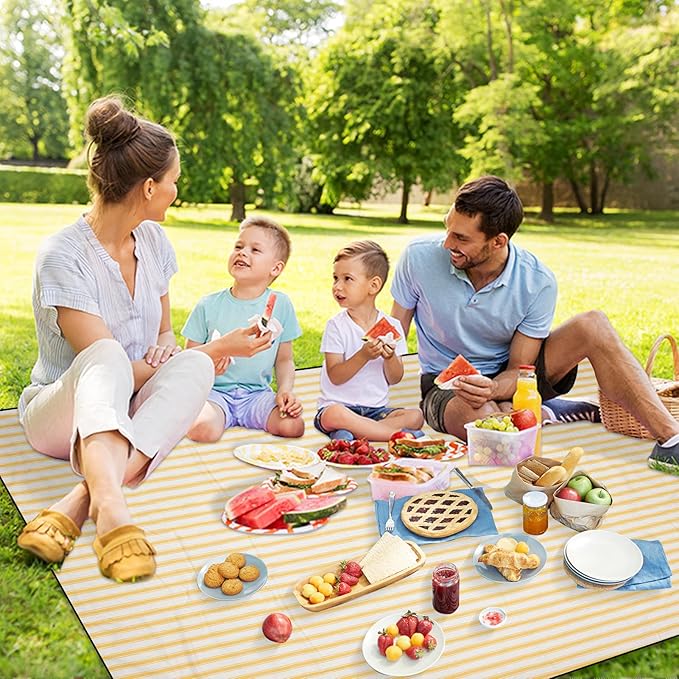 G GOOD GAIN Picnic Blankets Waterproof - Extra Large Outdoor Blanket Sand Free Foldable with Carry Strap for Beach, Camping, Park Grass, Hiking, Travel, Concerts, Indoor(Bumblebee)