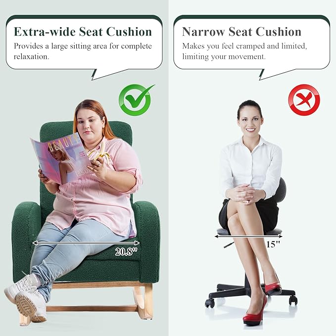 - Snug & Cozy - Covered with high-quality teddy for a soft and breathable surface, the glider chair brings you a luxurious yet casual sitting. Filled with high-density foam, the thick cushion are ensuring a soft, comfortable feel. This modern rocking chair with a high backrest will provide good support to your body. A refined curved wing back provides a comfortable sitting position for you to enjoy a leisurely time.