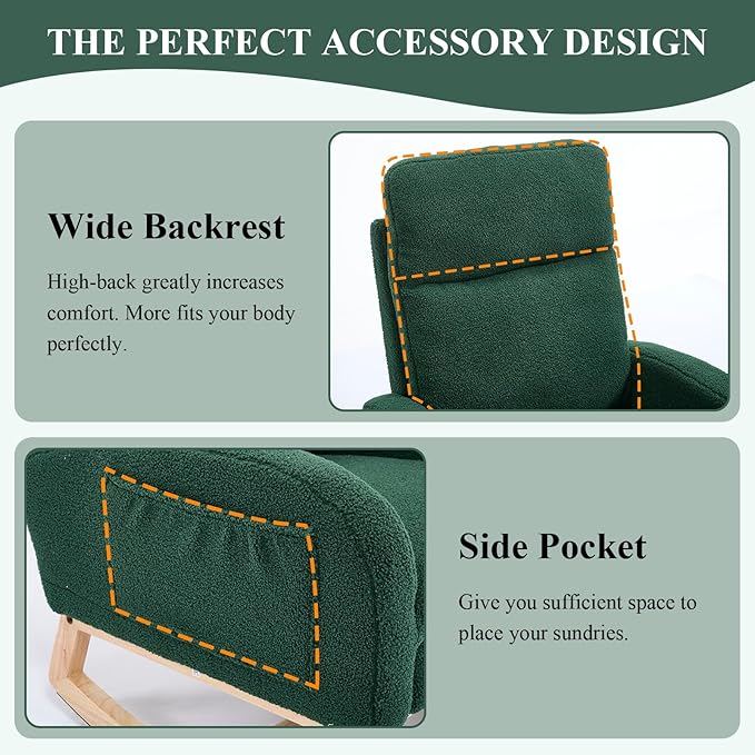 NIOIIKIT Oversized Nursery Rocking Chair, Teddy Upholstered Glider Chair with Footrest, Large Glider Rocker with Side Pocket, Rocking Accent Chair, Glider Recliner for Living Room (Green Teddy)